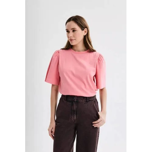 Deze CKS top IPSO is een veelzijdige basic die moeiteloos meebeweegt met jouw dag. De effen kleur maakt de top makkelijk te combineren, terwijl de subtiele details zorgen voor een moderne uitstraling. De comfortabele ronde hals en driekwart pofmouwen geven net wat extra karakter zonder te overheersen.Doordachte details voor elke dag Driekwart pofmouwen voor een stijlvolle, vrouwelijke look Ronde hals die mooi aansluit en prettig draagt Effen ontwerp, ideaal om te combineren met prints of denim Gemaakt van katoen met een klein percentage elastaan voor een soepele pasvorm Zonder zakken voor een rustige, cleane uitstralingEen top voor werk, weekend en alles ertusseninDeze top past gemakkelijk in verschillende outfits. Draag de IPSO op een hoge jeans voor een casual dag, of combineer met een nette pantalon voor een meer geklede look. De driekwart mouwlengte is handig in het tussenseizoen en voelt prettig aan wanneer je veel in beweging bent.CKS: eigentijdse mode met oog voor detailCKS staat bekend om collecties die aansluiten bij het dagelijkse leven, met aandacht voor pasvorm en draaggemak. Elke top wordt ontworpen met zorg voor mooie lijnen en praktische details, zodat jij kleding kiest waar je je de hele dag goed in voelt.Een toegankelijke essential die je garderobe rustig, stijlvol en compleet maakt.