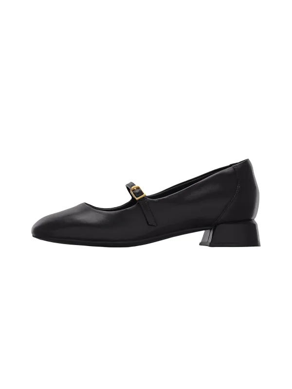 Design: Pumps met enkelbandje, Verstelbare riemen, Versterkte hak; Type sluiting: Riemsluiting; Materiaal: Leer; Motief: Effen; Materiaal: Glad leer; Schoenneus: Ronde neus; Extra's: Stevige stof, Flexibele zool; Hakhoogte: Platte hak (0-3 cm)