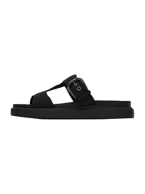 Design: Anatomisch gevormd voetbed, Gesp, T-strap; Type sluiting: Slip; Materiaal: Leer; Motief: Effen; Plateau: Met plateau; Materiaal: Suède; Schoenneus: Open toe; Extra's: Anti-slip zool, Flexibele zool; Hakhoogte: Platte hak (0-3 cm)