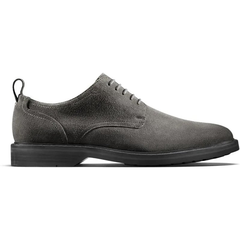Classic derby Aldwin in donkergrijs suede, ideaal voor kantoor of het weekend. Comfortabel en duurzaam met een rubberen zool, perfect voor dagelijks gebruik en stadswandelingen.