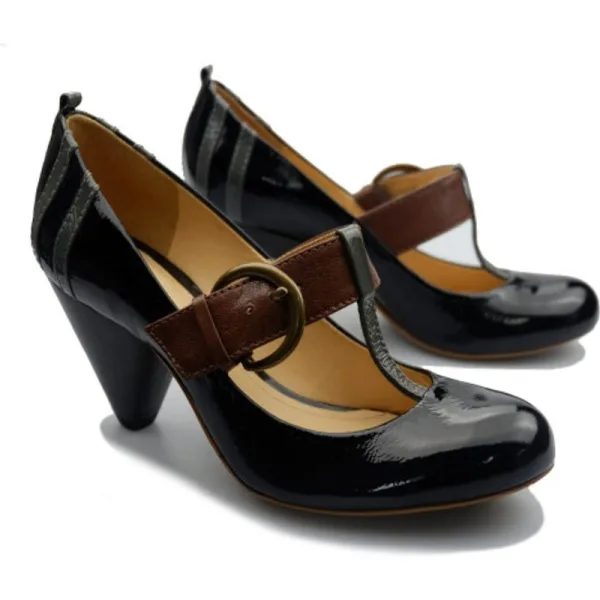Zeer elegante en stijlvolle pumps van lakleer. Versierd met een verstelbare riem.