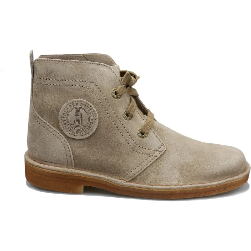 Deze Clarks Desert Lynx voor heren is gemaakt van beige suède. Sinds de jaren 50 een klassieker en nog steeds een sterk silhouet door de eenvoudige lijnen en de bekende crêpe zool.