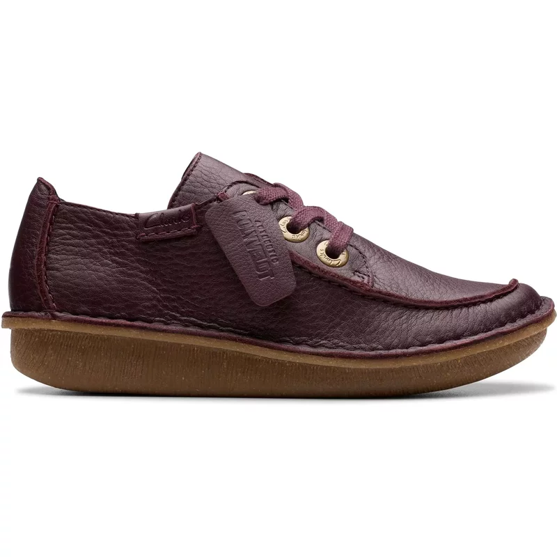 Geïnspireerd door vintage Clarks-ontwerpen combineert Funny Dream handgemaakte gestikte naden met dikke, Clarks-merk veterogen voor een eigentijdse touch. Glijd in het alledaagse comfort van de lichtgewicht, ronde wigzool, die is afgewerkt met een zwart leren bovenwerk dat bij alles past. Met lichtgewicht, duurzame zool.