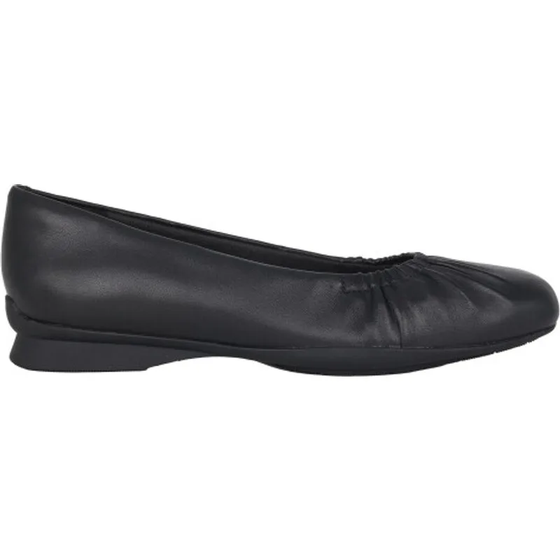 Normale pasvorm (D). Geïnspireerd door de populaire ballerina-stijlen, combineert de Jazmynn Lo een ultracomfortabele binnenzool met zachte stretch op de juiste plekken voor gemakkelijk de hele dag dragen. Duurzaam leer geeft dit silhouet een tijdloze, klassieke uitstraling die eenvoudig zowel casual als chique te stylen is. Voor betrouwbare grip bij iedere stap is de schoen afgewerkt met een flexibele TPR (thermoplastisch rubber) zool.