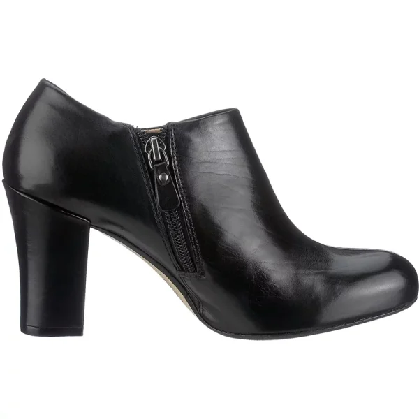Stijlvolle enkellaars van zwart leer. Ritssluiting op een stijlvolle blokhak van 7 cm.