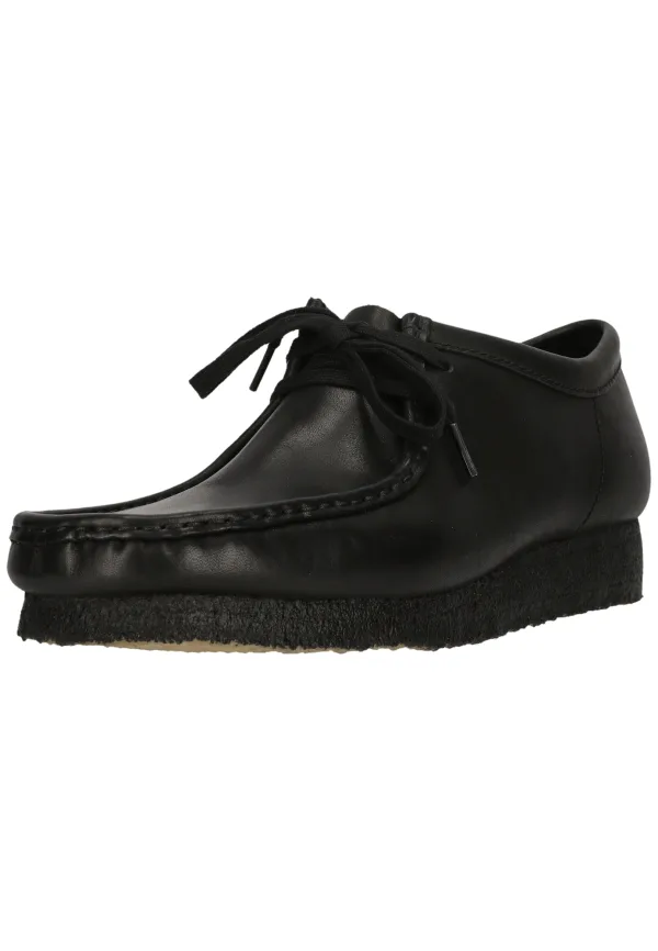 CLARKS Veterschoen ‘Wallabee Black Leather’ zwart