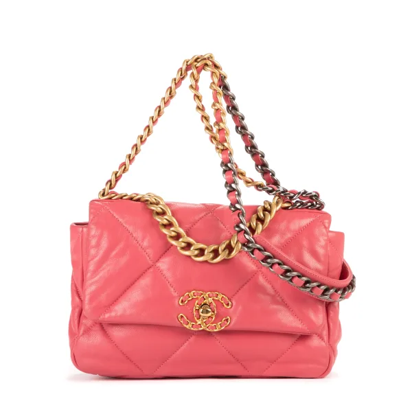 Chanel Tassen Classic 19 Flap Schoudertas in de Roze Kalfsleer in de Goud/Zilver hardware. Het product is in In Uitstekende Staat (A). Afmetingen: 25x17x8 cm Inclusief accessoires: None Opmerkingen over de buitenkant: Gekreukt leer Opmerkingen over de hardware: Licht Verkleurd & Krassen Opmerkingen over de band/het handvat: Verkleurde ketting & spijkers BrandCo Paris vindt zeldzame artikelen in de beste staat voor ongelooflijke prijzen. Het is de moeite waard om geduldig te zijn! Koop met vertrouwen: alle artikelen van BrandCo Paris worden zorgvuldig geselecteerd en geverifieerd door ons team van experts. Alle artikelen worden geleverd met een certificaat van echtheid en verpakt door BrandCo Paris. Classificatietabel voor de conditie van het artikel: N (als nieuw) AA (perfecte staat) A (uitstekende staat) AB (zeer goede staat) B (goede/redelijke staat)