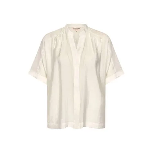 Deze luchtige geweven top van Claudia Sträter is een praktische basic voor zonnige dagen en lichte lagen. De ecru kleur oogt fris en zacht, terwijl de V-hals en rechte, korte mouwen samen zorgen voor een verzorgde uitstraling. Door de geweven kwaliteit valt de top soepel om het lichaam en blijft de fit comfortabel, ook tijdens warme dagen.Lichte zomertop met vrouwelijke details Effen ecru kleur die makkelijk te combineren is met zowel lichte als donkere onderstukken V-hals die het decolleté subtiel accentueert Korte, rechte mouwen voor een luchtig gevoel op warme dagen Geweven kwaliteit met een soepele, lichte touch Geen sluiting, waardoor de top gemakkelijk over het hoofd aan te trekken is Blousetop model dat losjes valt en niet tekent Gemaakt van viscose en katoen voor een zachte en comfortabele feelVeelzijdig te dragen in jouw garderobeDeze top combineer je eenvoudig met een rechte jeans, een wijde pantalon of een rok met hoge taille. Geschikt voor een werkdag met een blazer erover, maar ook passend bij een zomerse dag met sandalen en een lichte broek.Claudia by Claudia SträterClaudia by Claudia Sträter biedt kleding met een vrouwelijke en doordachte pasvorm, waarin stijl en draaggemak samengaan. Met aandacht voor mooie materialen en heldere lijnen creëert het merk items die seizoen na seizoen een vaste plek in je kledingkast kunnen krijgen.Een zachte top die je garderobe op een rustige en uitgebalanceerde manier aanvult.