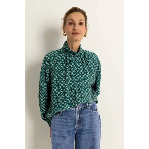 Deze Claudia Sträter top uit de lijn CLAUDIA BY CLAUDIA STRÄTER is een comfortabele basis voor elke dag. De top heeft een colkraag en lange, rechte mouwen, waardoor deze geschikt is voor verschillende seizoenen. De all over print geeft direct een verzorgde uitstraling, terwijl de knoopsluiting aan de voorkant zorgt voor een nette afwerking. Gemaakt van 84% viscose en 16% polyamide voelt de stof soepel en glad aan op de huid.Details die het verschil maken Lange mouwen met rechte inzet voor een rustige, tijdloze look Colkraag die de hals subtiel omsluit Knoopsluiting aan de voorzijde voor gemakkelijk aan- en uittrekken All over print voor een verzorgd totaalbeeld Gemaakt van 84% viscose en 16% polyamide voor een soepele stof met lichte stretch Geen zakken, waardoor het silhouet strak en clean blijftVeelzijdig in verschillende outfitsDeze top laat zich eenvoudig combineren. Draag hem onder een blazer voor een nette werkdag of op een donkere jeans voor een meer ontspannen look. De col en print geven genoeg detail, waardoor extra accessoires niet nodig zijn.CLAUDIA BY CLAUDIA STRÄTERCLAUDIA BY CLAUDIA STRÄTER is de moderne lijn van Claudia Sträter, met aandacht voor draagbaarheid en een duidelijke pasvorm. De collecties zijn ontworpen met oog voor detail en materialen die prettig aanvoelen, zodat je kiest voor kleding waarin je je de hele dag comfortabel voelt.Een verzorgde top die je garderobe rustig en overzichtelijk aanvult.