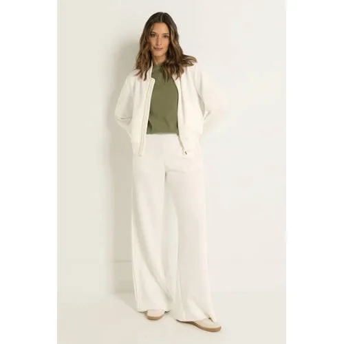 Voeg een zachte, vrouwelijke laag toe aan je outfit met dit Claudia Sträter bomberjack voor dames in crème. De korte lengte en ronde hals geven een moderne uitstraling, terwijl de gebreide structuur zorgt voor een subtiel en verzorgd effect. Ideaal voor het voorjaar, wanneer je net dat extra laagje wilt zonder dat het zwaar aanvoelt.Gebreid bomberjack in zachte crème Korte jas met bomberjack silhouet voor een moderne, sportief-chique look Gemaakt van een zachte kwaliteit met viscose en een beetje stretch voor een soepele fit Gebreide structuur voor een rijke, textuurvolle uitstraling Ronde hals die mooi aansluit bij zowel tops met ronde hals als V-halzen Volledig gevoerd voor extra comfort en een nette pasvorm Handige ritssluiting middenvoor voor snel aan- en uittrekken Zakken voor, praktisch om kleine essentials in op te bergen Effen crème kleur die gemakkelijk combineert met lichte en donkere tinten Lange, rechte mouwen die prettig om de armen vallenVeelzijdig laagje voor het voorjaarDeze korte jas is ideaal als licht buitenlaagje op mildere dagen, maar staat ook mooi als indoor jasje over een top of jurk. Draag het bomberjack bijvoorbeeld op een hoge jeans of een rechte rok voor een verzorgde, alledaagse look.Feminine stijl van Claudia SträterDe CLAUDIA BY CLAUDIA STRÄTER lijn staat voor vrouwelijke silhouetten met doordachte details. Deze jas past daar naadloos in, met een verfijnde afwerking en een tijdloze kleur die seizoen na seizoen relevant blijft.Een stijlvol, comfortabel jasje dat je gemakkelijk pakt voor werk, etentjes en vrije dagen.