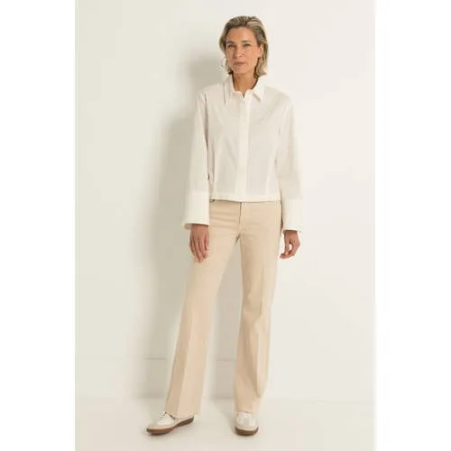 Geef je garderobe een frisse update met deze lichtgrijze flared jeans van CLAUDIA BY CLAUDIA STRÄTER. De kleur 'silver birch' oogt zacht en modern en vormt een basis voor zowel casual als meer geklede outfits. Het model valt lang, heeft een regular waist en loopt vanaf de knie subtiel uit in een flare.Details die het verschil maken Flared model: smal op het bovenbeen en uitlopend vanaf de knie voor een vrouwelijke lijn Regular waist: middelhoge taille die prettig aansluit rond heupen en taille Vijf pocketstijl: twee achterzakken, drie voorzakken en een coin pocket voor de herkenbare denim look Rits- en knoopsluiting: klassiek en makkelijk in gebruik Riemlussen: draag met je favoriete riem voor extra accent in de taille Gemaakt van 98% katoen en 2% elastaan, wat zorgt voor een soepele, licht meebewegende denim Effen lichtgrijze wassing zonder slijtage details voor een rustige uitstralingVeelzijdig in je dagelijkse outfitsDeze jeans past eenvoudig in je dagelijkse kledingroutine. Combineer met een luchtige blouse en sandalen voor een zomerse dag, of draag een aansluitende top en sneakers voor een casual weekendlook. Door de lange pijpen met flare valt de broek mooi over hakken of laarzen.De stijl van Claudia SträterClaudia Sträter staat bekend om tijdloze ontwerpen met een vrouwelijke pasvorm en aandacht voor detail. De CLAUDIA BY CLAUDIA STRÄTER lijn brengt deze stijl op een eigentijdse en toegankelijke manier. Je kiest voor mode die doordacht is ontworpen en waarin je iedere dag verzorgd voor de dag komt.Een lichte basisjeans die je garderobe rustig, modern en doordraagbaar maakt.