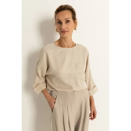 Deze verfijnde Claudia Sträter blousetop is een lichte, vrouwelijke basic voor elke dag in het voorjaar. De top heeft een klassieke kraag en een doorlopende knoopsluiting, waardoor hij zowel open als gesloten mooi valt. De driekwart mouwen met rechte inzet geven een verzorgde uitstraling die past bij kantoor, een etentje of een casual dag in de stad.Verzorgde details voor elke dag Gemaakt van 100% lyocell, een zachte stof die soepel om het lichaam valt Klassieke kraag en knoopsluiting voor een nette, tijdloze look Driekwart mouwen met rechte mouwinzet voor een luchtig en verzorgd silhouet Effen kleur, eenvoudig te combineren met zowel een jeans als een rok Borstzak als subtiel detail dat de blousetop net wat meer karakter geeft Onderdeel van de Feminine collectie, met focus op een vrouwelijk lijnenspelEen lichte blouse voor het voorjaarDeze blousetop is gemaakt voor het lenteseizoen. De stof voelt luchtig aan en de driekwart mouwen geven net genoeg bedekking. Draag de top los over een pantalon voor een ontspannen uitstraling of in de band van een rok voor een meer gestylede look.Stijlgevoel van Claudia SträterClaudia Sträter staat bekend om doordachte pasvormen en een vrouwelijke benadering van mode. De collecties zijn ontworpen met aandacht voor detail en langdurig draagplezier, zodat elke top een vaste plek in de garderobe kan innemen.Een elegante blousetop die moeiteloos meebeweegt met jouw dag.