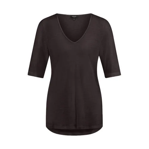 Deze bruine lyocell linnen dames top met driekwart mouw van Claudia Sträter is een lichte, elegante basic voor het voorjaar. De zachte bruine kleur is rustig en tijdloos, terwijl de V-hals en rechte mouwen zorgen voor een verfijnde uitstraling. Door de mix van lyocell en linnen voelt de top soepel en luchtig aan op de huid, ideaal voor dagen waarop je net iets meer wilt dan een eenvoudig T-shirt.Licht materiaal en vrouwelijke snit Gemaakt van 70% lyocell en 30% linnen voor een zachte, ademende touch Driekwart mouwen met rechte inzet voor een rustige, nette look V-hals die de halslijn subtiel accentueert Effen bruine kleur die makkelijk te combineren is Geschikt voor het lenteseizoen, maar ook fijn in laagjes op koelere dagenMakkelijk te stylen in je dagelijkse outfitsDeze top past goed bij een rechte jeans, een nette pantalon of een rok met een hoge taille. In combinatie met sandalen of sneakers creëer je een ontspannen look voor overdag. Met een blazer en laarsjes wordt het meteen een meer geklede outfit voor werk of een etentje.Claudia Sträter: verfijnde mode met aandacht voor detailClaudia Sträter staat bekend om vrouwelijke collecties met een duidelijke signatuur. De ontwerpen hebben een doordachte pasvorm en rustige lijnen, waardoor je kledingstuk meerdere seizoenen mooi blijft in je garderobe. Deze top sluit daar naadloos op aan door de combinatie van comfort, stijl en zorgvuldige afwerking.Een rustige, stijlvolle basis die je garderobe op een verfijnde manier aanvult.