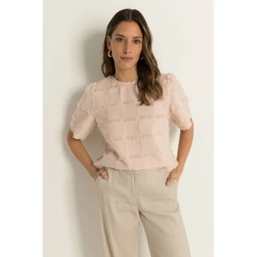 Geef je outfit een verfijnde upgrade met deze taupekleurige dames top met franjes van Claudia Sträter. De elegante taupe kleur is rustig en stijlvol, terwijl de subtiele franjes langs de voorzijde zorgen voor een speels accent. Door de halve mouwen en ronde halslijn is deze top ideaal voor het voorjaar en voor dagen waarop je net even iets gekleder voor de dag wilt komen.Kenmerken die het verschil maken Effen taupe kleur die zich makkelijk laat combineren met zowel lichte als donkere onderstukken Halve mouwen met rechte mouwinzet voor een rustige, nette uitstraling Ronde hals die mooi aansluit zonder hoog te sluiten Decoratieve franjes aan de voorkant voor een vrouwelijke, moderne touch Ritssluiting op de rug, zodat de top gemakkelijk aan en uit gaat Soepelvallende stof die prettig om het lichaam valt en er verzorgd uitziet Geen zakken, waardoor het silhouet mooi strak en clean blijftVeelzijdig te stylen in het dagelijks levenDeze top past goed bij een nette broek voor op kantoor, maar combineert ook moeiteloos met een jeans voor een meer casual dag. Door de neutrale kleur vormt hij een rustige basis, terwijl de franjes nét dat extra detail geven. Met een paar hakken en fijne sieraden maak je de look eenvoudig wat gekleder.Claudia Sträter: tijdloze vrouwelijkheidClaudia Sträter staat bekend om vrouwelijke ontwerpen met een doordachte pasvorm en een verzorgde uitstraling. Elke collectie is ontworpen met oog voor detail en draagbaarheid, zodat je je de hele dag comfortabel én stijlvol voelt. Deze top sluit daar naadloos op aan en is een mooie toevoeging aan een garderobe die draait om kwaliteit en elegantie.Een stijlvolle keuze voor dagen waarop je zonder moeite verzorgd voor de dag wilt komen.