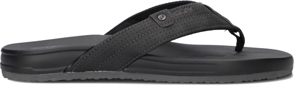 Stap in stijl met de CLAY004 slippers van CLAY. Deze zwarte slippers met leatherlook buitenkant zijn perfect voor heren die op zoek zijn naar comfort en een trendy uitstraling. Draag ze naar het strand of tijdens een casual dagje uit in de stad. Combineer de slippers met een stoere jeans en een basic t-shirt voor een relaxte look. Met de CLAY004 slippers ben je klaar voor elke zomerse gelegenheid.