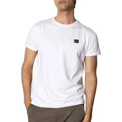 Specificaties: * Pasvorm: regular fit; ronde hals * Model: het model is 188 cm lang en draagt maat L * Kleur: wit * Materiaal: 95% biologisch katoen - 5% elastaan