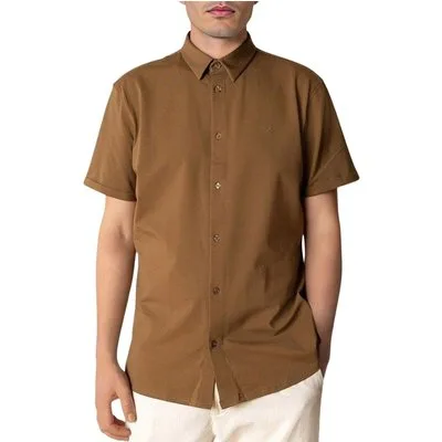 Specificaties: * Pasvorm: regular fit; korte mouwen * Sluiting: knoopsluiting * Kleur: bruin * Materiaal: 92% katoen – 8% elastaan * Extra bijzonderheden: cutaway-kraag; zachte jersey-stof