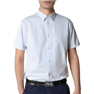 Specificaties: * Pasvorm: regular fit; korte mouwen * Sluiting: knoopsluiting * Kleur: lichtblauw * Materiaal: 92% katoen – 8% elastaan * Extra bijzonderheden: cutaway-kraag; zachte jersey-stof