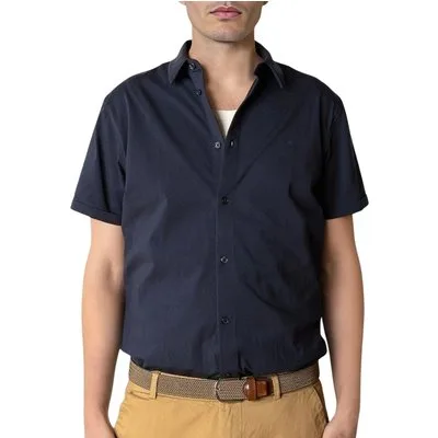 Specificaties: * Pasvorm: regular fit; korte mouwen * Sluiting: knoopsluiting * Kleur: navy * Materiaal: 92% katoen – 8% elastaan * Extra bijzonderheden: cutaway-kraag; zachte jersey-stof