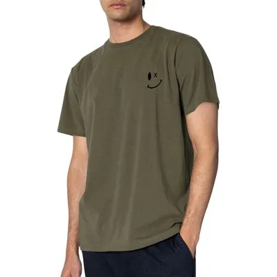 Specificaties: * Pasvorm: regular fit; ronde hals * Model: het model is 188 cm lang en draagt maat L * Kleur: armygroen * Materiaal: 95% biologisch katoen - 5% elastaan