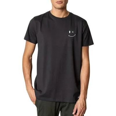 Specificaties: * Pasvorm: regular fit; ronde hals * Model: het model is 188 cm lang en draagt maat L * Kleur: zwart * Materiaal: 95% biologisch katoen - 5% elastaan