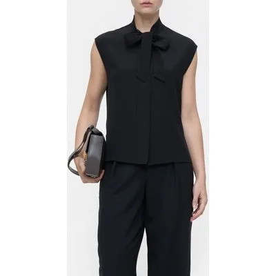 Closed Sleeveless Bowtie Top Shirts & Blouses Black Prijzen