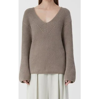 Closed V Neck Long Sleeve Knits Brown Sugar Prijzen