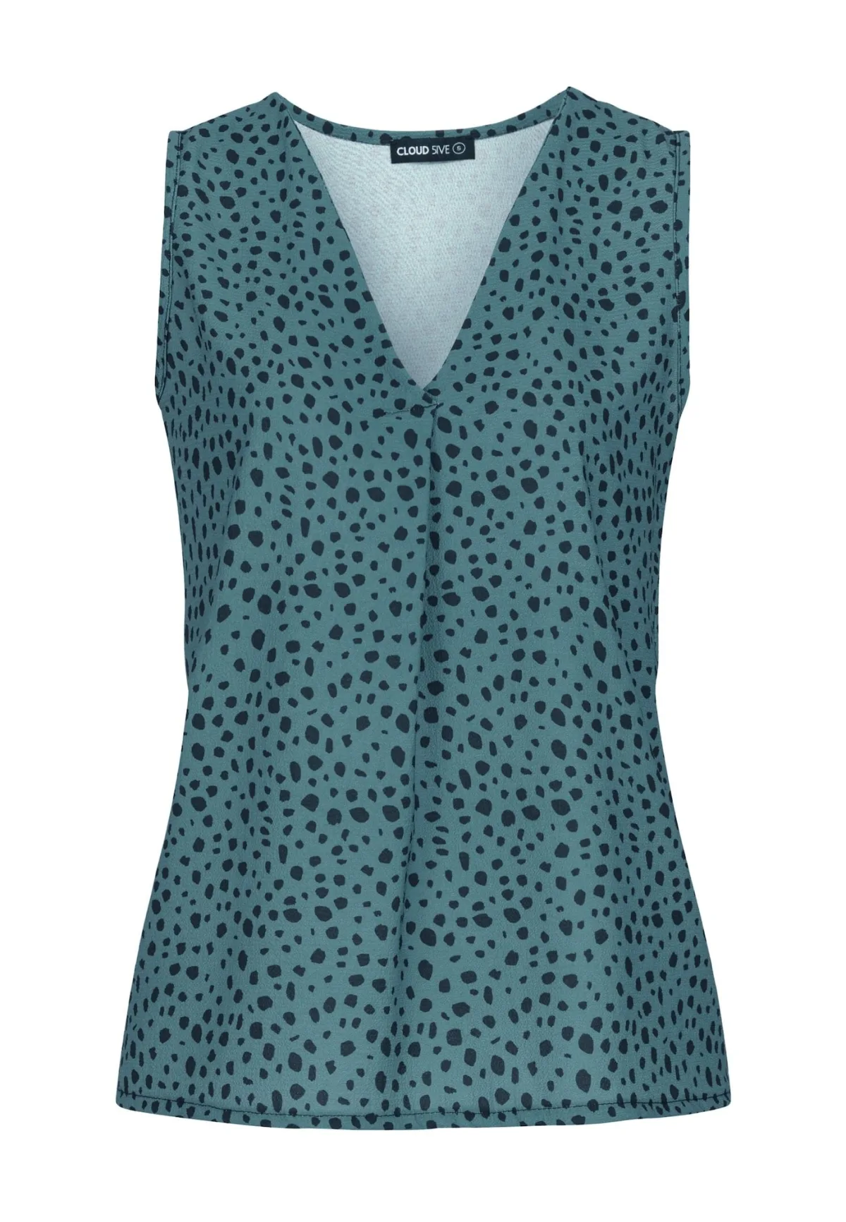 Blouse type: Blouseshirt; Design: Gevoerde zoom/rand; Type sluiting: Gesloten; Halstype: V-hals; Motief: Dierenprint; Kraag: Zonder kraag; Details: Plooien; Extra's: All-over patroon; Pasvorm: Normale pasvorm; Armlengte: Mouwloos; Lengte: Normale lengte