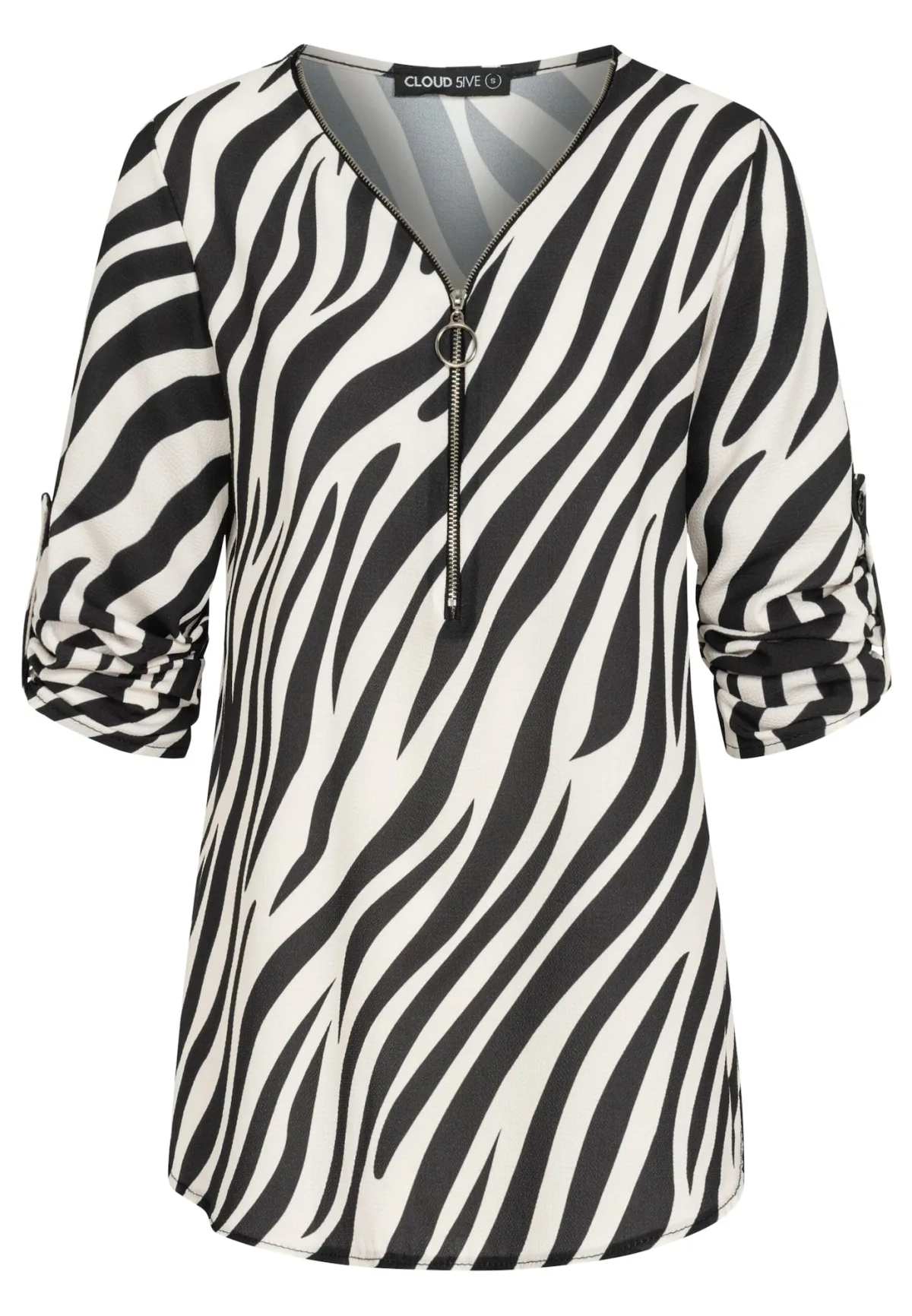 Blouse type: Blouseshirt; Design: Halve rits; Motief: Dierenprint; Kraag: Zonder kraag; Details: Plooien; Extra's: All-over patroon; Pasvorm: Losse pasvorm; Armlengte: Lange mouw; Lengte: Normale lengte