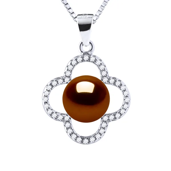 Clover Ketting Zoetwaterparel 9-10 mm Chocolate 925
