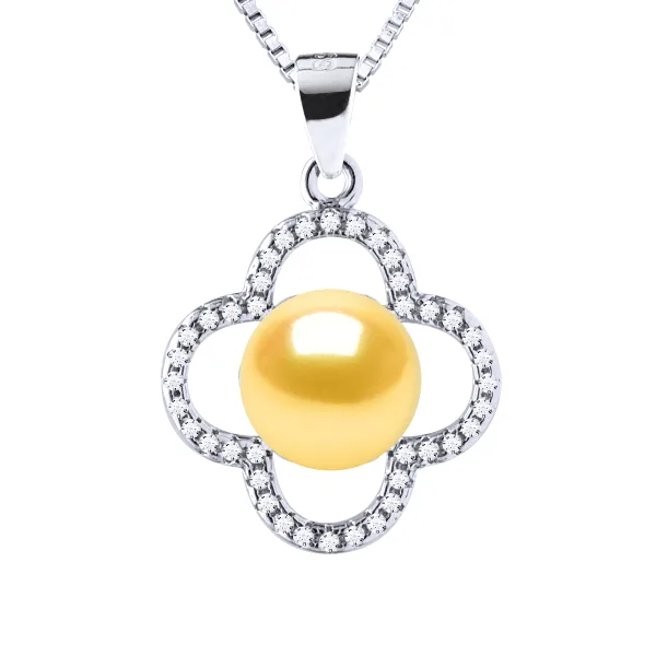 Clover Ketting Zoetwaterparel 9-10mm Golden 925 Prijzen