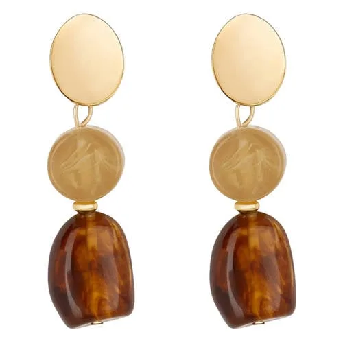 Deze oorbellen van Club Manhattan zijn gemaakt van hars. De goudkleurige en bruine kleuren vallen op, je draagt deze oorbellen elke dag makkelijk. Geschikt voor dagelijks gebruik.