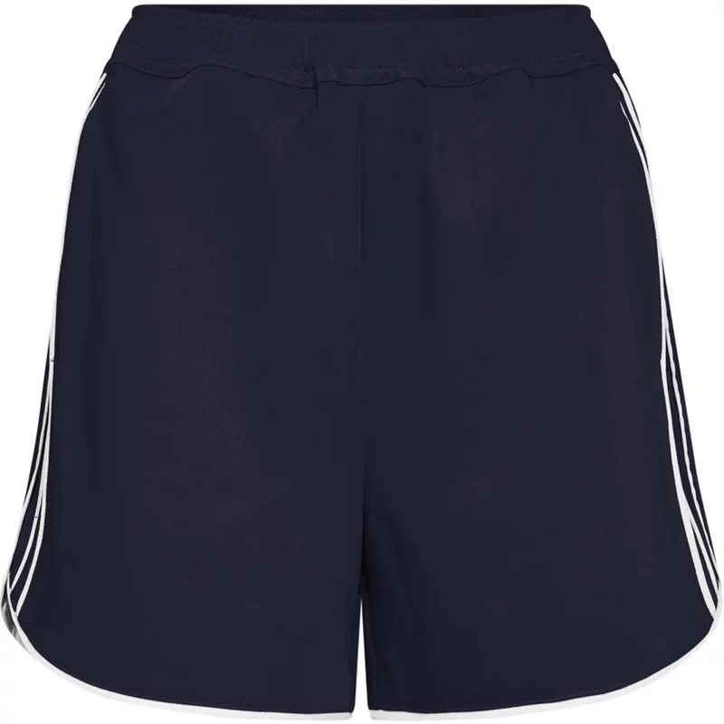 Ga voor een sportieve en stijlvolle look met de Co' Couture AlmaCC Stripe Shorts. Deze relaxte short is gemaakt van een comfortabele, licht geweven stof met stretch en heeft een elastische tailleband voor een perfecte pasvorm. De navy kleur, contrasterende biezen langs de zijnaden en de high waist geven de short een moderne, casual uitstraling. Dankzij de steekzakken en het comfortabele model is deze short ideaal voor zowel vrije tijd als een actieve dag. Super leuk te combineren met het Edge CC T-shirt van Co Couture. Product details: Merk: Co' Couture Modelnaam: AlmaCC Stripe Shorts Kleur: Blauw (Navy) Materiaal: 95% polyester, 5% elastaan Elastische tailleband High waist Biezen langs de zijnaden Steekzakken Binnenbeenlengte circa 12 cm (maat 36) Relaxed fit, valt normaal op maat Wasvoorschrift: Machinewas 30°C