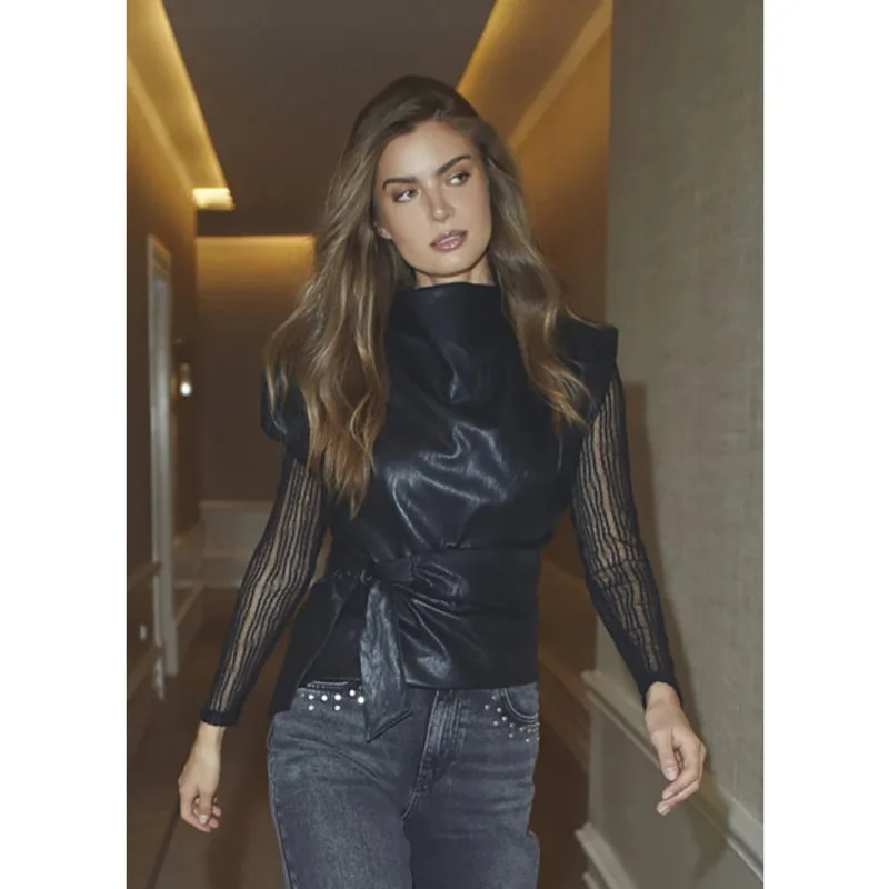 Maak kennis met de BarbCC O-Neck Blouse van Co'Couture – een verfijnd statement piece dat glamour en minimalisme perfect in balans brengt. Deze zwarte mesh top is vervaardigd uit een doorschijnende stof met verticale fluwelen strepen, wat zorgt voor een speels lijnenspel en een subtiele retro vibe. De aangesloten pasvorm accentueert je silhouet, terwijl de ronde halslijn zorgt voor een tijdloos en elegant design. Dankzij de transparante stof is de BarbCC blouse ideaal om te layeren over een mooie bralette of onder een blazer of leren top, voor een edgy maar vrouwelijke look. Perfect voor een avondje uit of een feestje, maar ook eenvoudig te combineren met jeans of een pantalon voor een stijlvolle dagelijkse outfit. Stijltip: Draag de BarbCC blouse onder een leren top of met een bralette en high waist jeans voor een onweerstaanbaar chique look met een twist. Product details: Merk: Co Couture Style: BarbCC Kleur: Zwart Ronde halslijn Aangesloten pasvorm Verticale fluwelen strepen in de stof Transparante mesh (licht doorschijnend) Lange mouwen Geen voering Stretchy materiaal voor comfort Materiaal: 90% polyamide, 10% elastaan