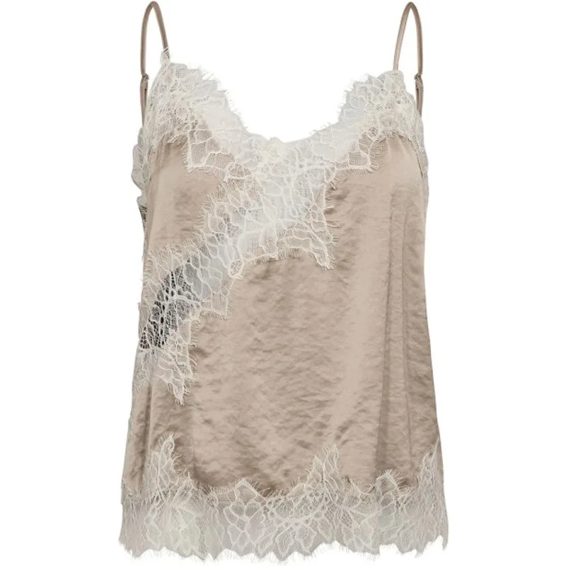 De IdunCC Lace Top van Co'couture is een elegante basic die je eindeloos kunt combineren. Deze licht beige top heeft een vrouwelijke uitstraling dankzij de verfijnde kanten details langs de V-hals en de onderzoom. Subtiel, maar precies genoeg om je outfit net wat zachter en chiquer te maken. De stof voelt licht en comfortabel aan door de mix van polyester en viscose en valt soepel om het lichaam. De dunne, verstelbare spaghettibandjes zorgen voor een mooie pasvorm, terwijl de regular fit ervoor zorgt dat de top prettig draagt, zowel los als onder een blazer of vest. Perfect als basis onder een jasje, maar ook mooi genoeg om zo te dragen op een jeans, pantalon of rok. Product details: Merk: Co’Couture Style: IdunCC Lace Top Stylecode: 45166 Kleur: licht beige Pasvorm: regular fit Hals: V-hals Bandjes: dunne, verstelbare spaghettibandjes Details: kanten randen bij hals en zoom Materiaal: 54% polyester, 46% viscose