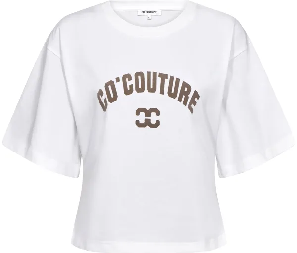 Shirt Zenga van Co'Couture is een casual item met ronde hals, korte mouwen en een opvallende logoprint op de borst. De rechte, iets ruimere pasvorm en brede mouwboorden geven een relaxte uitstraling, ideaal voor alledaagse combinaties met jeans, rok of blazer.