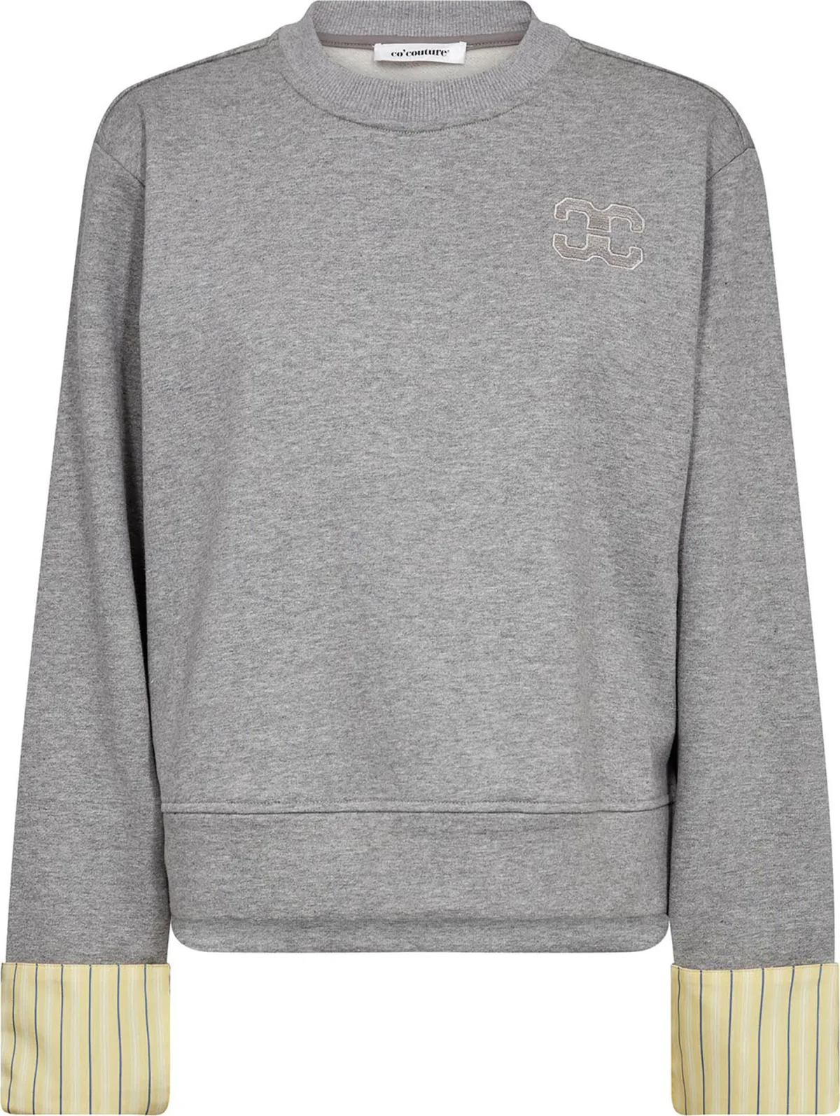 Sweater Daniella van Co'Couture is een casual sweater met ronde hals, regular pasvorm en lange mouwen met ribgebreide boorden. Het effen grijze ontwerp heeft een subtiel logo op de borst en opvallende, gestreepte manchetten. Draag met jeans en sneakers voor een relaxte outfit.