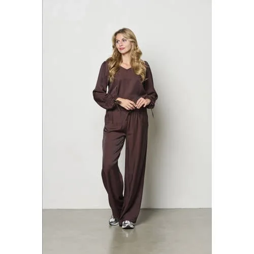 Deze top van &CO is licht uitlopende en is gemaakt in een soepelvallende viscose kwaliteit. Extra details zijn: - Pofmouw met strikdetails bij mouwzoom. - Uitlopend model. - V-Hals. Materiaal: 89% Viscose - 11% Polyamide Wasvoorschrift: Machinewas max. Fijnwas 30 graden Celsius. Niet in droger