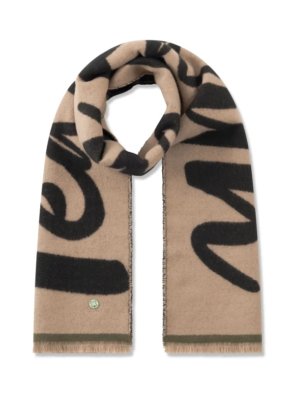 Design: Gevoerde zoom/rand; Motief: Tekst print; Sjaal vorm: Rechthoekig; Extra's: All-over patroon, Burnout effect