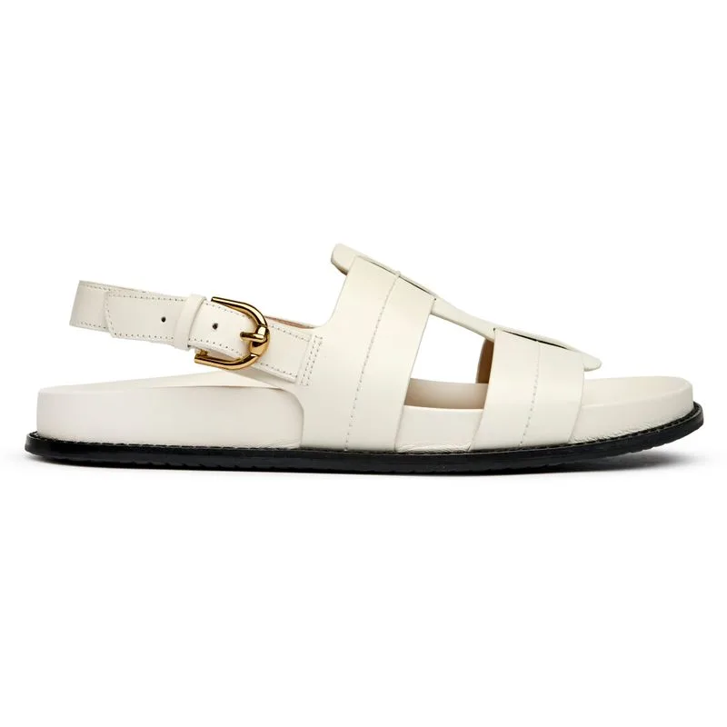 De Cole Haan Marlee Fisherman brengt tijdloze nautische charme in je zomergarderobe met zijn klassieke witte leren constructie. Deze elegante platte schoen heeft een comfortabel voorgevormd voetbed en een luxe leren voering die je voeten de hele dag comfortabel omhult. De veilige gespsluiting en duurzame rubberen zool maken hem perfect voor wandelingen langs de kust of stadsavonturen waar stijl en functionaliteit samenkomen.