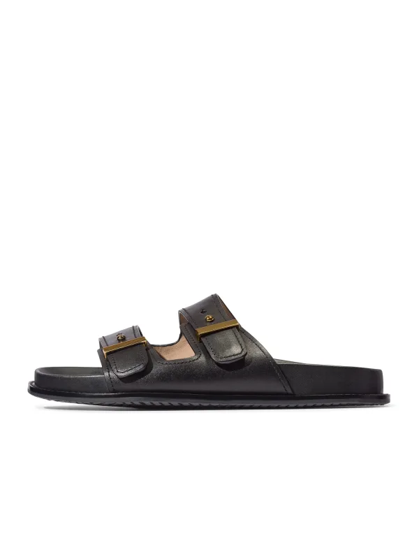 Design: Anatomisch gevormd voetbed; Type sluiting: Slip; Materiaal: Leer; Motief: Effen; Materiaal: Glad leer; Schoenneus: Open toe; Extra's: Gewatteerde rand; Hakhoogte: Platte hak (0-3 cm)