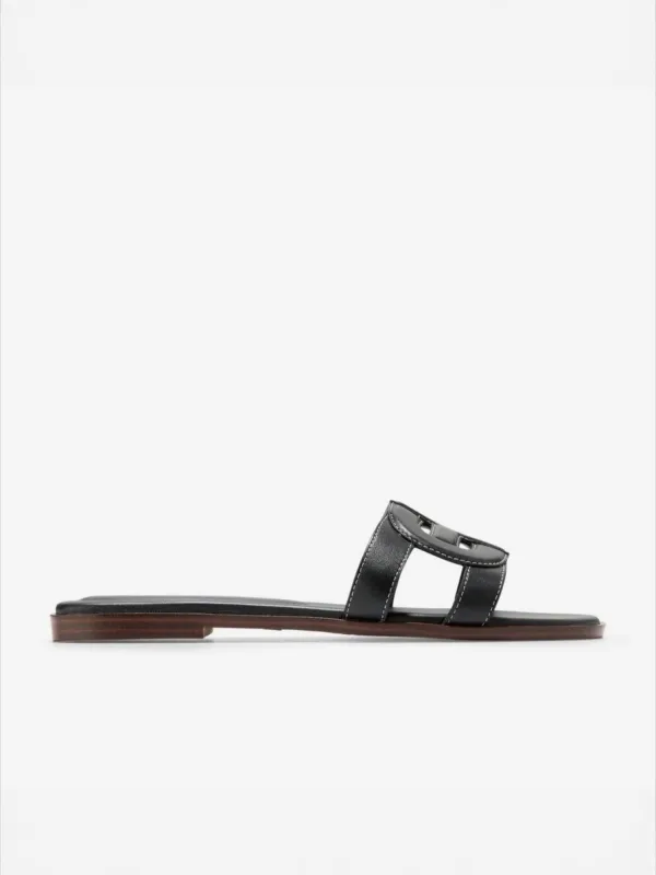 Materiaal: Leer; Motief: Effen; Schoenneus: Open toe; Hakhoogte: Platte hak (0-3 cm)