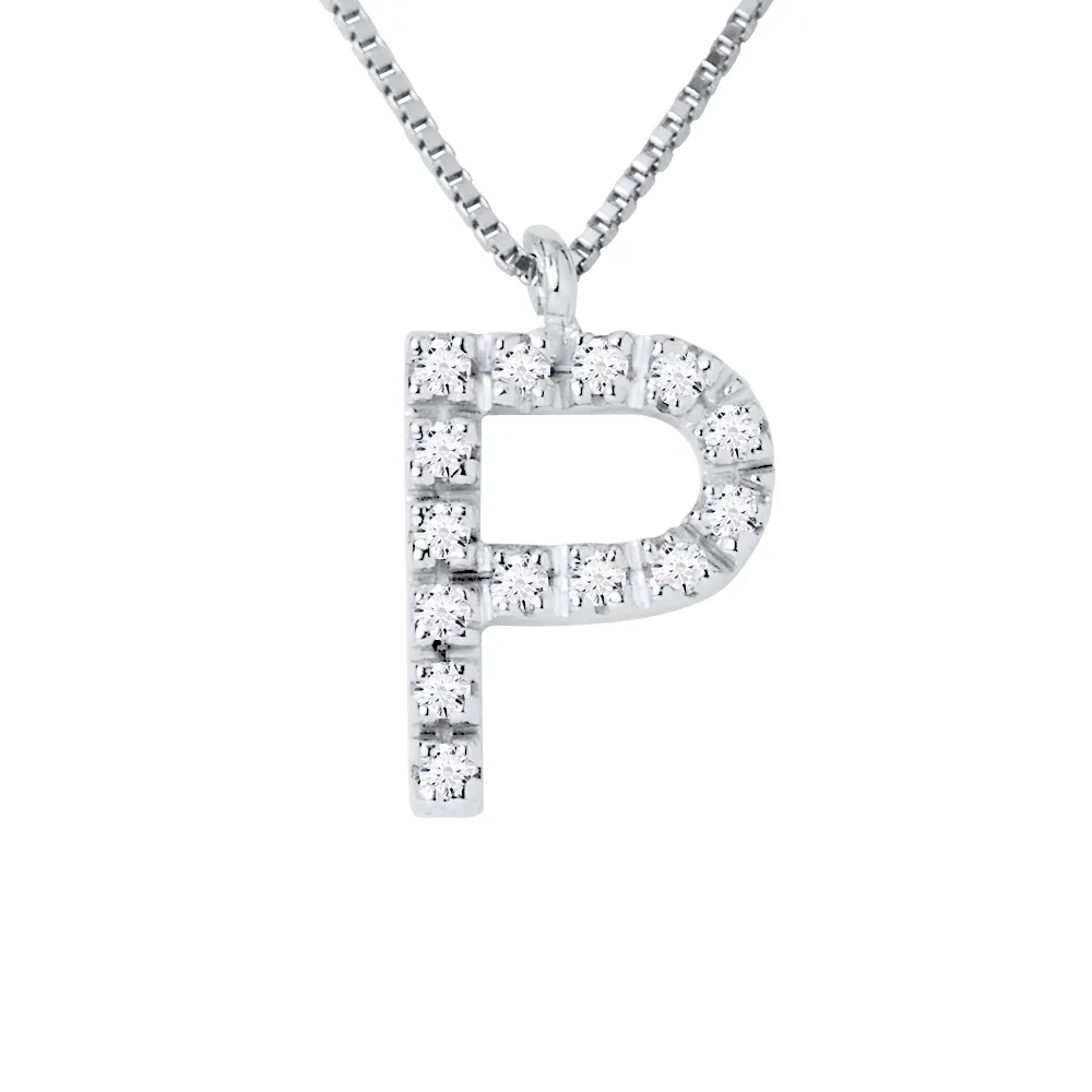 Diamond Necklace 0,07 cts - Brief P -Kwaliteit HSi (Color H - Quality Si1) - Grootte Glossy - Serti Claws - White Gold 750 duizendste (18K) - Venetiaanse Chain Lengte 42 cm - 2 jaar garantie op fabricagefouten - Geleverd in haar zaak met een certificaat van echtheid en een Internationale Garantie - Al onze juwelen zijn gemaakt in Frankrijk.