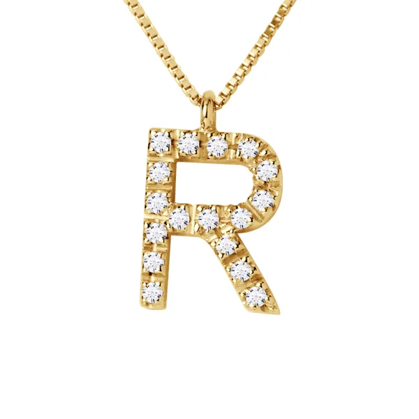 Collar ABC Diamonds 0.09 Cts letter "R" 18 karaats geel...