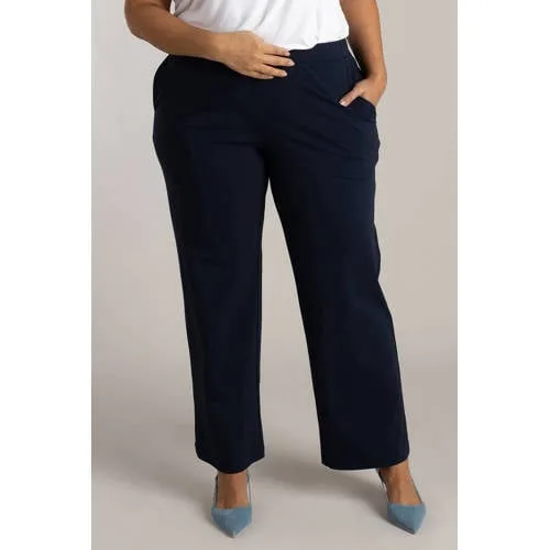 Colletta straight regular waist casual broek donkerblauw