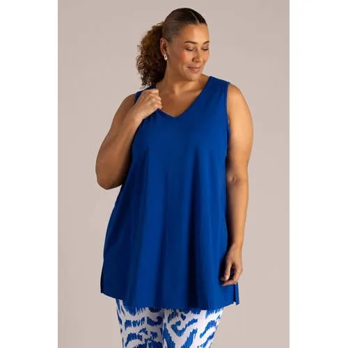 Deze effen blauwe mouwloze top voor dames van Colletta is een fijne basic voor warme dagen en lichte laagjes. De top heeft een vrouwelijke V-hals en een subtiel aangesloten pasvorm, waardoor de top netjes om het lichaam valt zonder strak te zitten. De soepele stof beweegt prettig met je mee, ideaal voor dagelijks gebruik in het voorjaar en de zomer.Comfortabele basic in effen blauw Gemaakt van 64% viscose, 28% nylon en 8% elastane voor een zachte en soepele touch Mouwloos ontwerp, prettig luchtig op warme dagen of onder een vest of blazer V-hals zorgt voor een open, vrouwelijke halslijn Zonder sluiting, zodat de top eenvoudig over het hoofd aangetrokken wordt Effen blauwe kleur, makkelijk te combineren met jeans, rok of nette broek Onderdeel van het grote maten assortiment voor een comfortabele pasvorm in grotere matenVeelzijdig te dragen op warme dagenDe top past goed bij je dagelijkse garderobe. Draag hem casual op een korte broek of jeans, of combineer hem met een lichte blazer voor een meer geklede look. De ademende stof en het mouwloze model maken deze top een praktische keuze voor zomerse temperaturen.Colletta dagelijkse modeColletta richt zich op draagbare mode voor elke dag, met aandacht voor pasvorm en comfort. De items zijn ontworpen om makkelijk te combineren te zijn, zodat je met weinig moeite een complete outfit samenstelt die prettig zit en er verzorgd uitziet.Een rustige, effen top die je garderobe op een praktische manier aanvult.