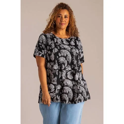 Deze zwart-witte dames top met all over print van Colletta is een praktische basic voor elke dag. Het grafische dessin in zwart/wit geeft direct een moderne uitstraling, terwijl de rechte pasvorm en het soepele materiaal zorgen voor comfortabel draaggemak. De ronde hals en korte mouwen maken deze top geschikt voor allerlei gelegenheden, van werkdag tot weekend.Details die je elke dag graag draagt Zwart/witte all over print voor een moderne, tijdloze look Ronde hals en korte, rechte mouwen voor een luchtig gevoel Gemaakt van 64% viscose, 28% nylon en 8% elastaan voor een soepele stretch Elastisch materiaal dat prettig meebeweegt met je lichaam Geen sluiting, je trekt de top eenvoudig over het hoofd aan Onderdeel van de 'Daily' collectie, ontworpen voor alledaags gebruik Geschikt voor grote maten, met aandacht voor een comfortabele pasvorm Wasbaar op 30 graden, makkelijk te onderhoudenVeelzijdig in je dagelijkse garderobeDeze top combineer je gemakkelijk met een zwarte broek, jeans of rok. De zwart/witte print laat zich eenvoudig stylen, zowel met rustige basics als met opvallende accessoires. Geschikt voor dagen waarop je snel wilt aankleden en toch verzorgd voor de dag wilt komen.Colletta: toegankelijke stijl voor elke dagColletta richt zich op draagbare mode met een actuele uitstraling. De collecties zijn ontworpen voor dagelijks gebruik, met aandacht voor pasvorm en comfort in grote maten. Zo voeg je met deze top een functioneel en modern item toe aan je kast.Een praktische keuze voor dagen waarop je behoefte hebt aan comfort met een moderne uitstraling.