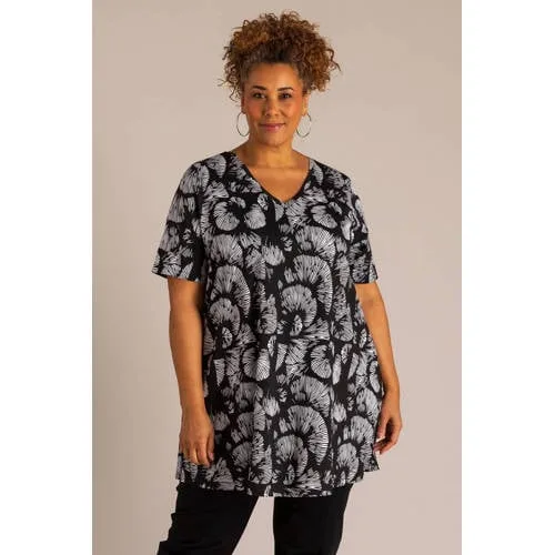 Deze Colletta zwarte tuniek met all over print is een basic voor elke dag. Het zwart/witte dessin geeft een rustige, maar opvallende uitstraling en combineert gemakkelijk met je favoriete broeken. De V-hals en rechte lange mouwen zorgen voor een losse look die soepel rond het lichaam valt, speciaal afgestemd op het assortiment in grote maten.Comfort en details voor elke dag Gemaakt van 64% viscose, 28% nylon en 8% elastaan voor een soepele, licht rekbare stof Zwart/witte all over print die je eenvoudig combineert met effen onderstukken V-hals die het hals- en decolletégebied laat zien zonder diep te zijn Lange rechte mouwen voor extra bedekking en comfort in het lenteseizoen Valt los om het lichaam, zonder zakken of sluiting, voor een rustige belijning Wasbaar op 30 graden, handig in onderhoud voor dagelijks gebruikVeelzijdig te stylen tuniekDeze tuniek uit de 'Daily' collectie draag je makkelijk naar werk, een etentje of een dagje stad. Combineer met een zwarte legging of een smalle broek en comfortabele schoenen voor een complete outfit die geschikt is voor verschillende momenten op de dag.Colletta: gespecialiseerd in passen en vallenColletta richt zich op mode in grote maten met aandacht voor pasvorm, lengte en draagcomfort. De ontwerpen zijn doordacht, zodat de kleding rond het lichaam valt en aansluit bij het dagelijkse leven.Een toegankelijke tuniek die je garderobe een rustig, grafisch dessin toevoegt.