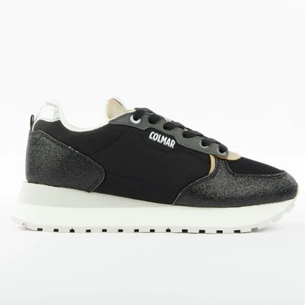 Colmar Travis Sport Bold damessneakers in zwart synthetisch materiaal. Originele Colmar merkschoen – streetwear/sportswear design – modieuze Colmar sneakers voor dames, perfect voor dagelijks gebruik – deze zwarte Colmar sneakers zijn een ideale aanvulling op je garderobe – comfortabel synthetisch materiaal – klassieke veters – Travis Sport Bold – synthetisch