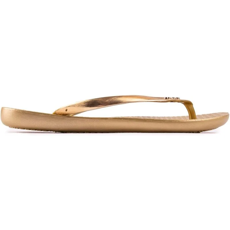 Geef je look aan het zwembad een glamoureuze finish met de gouden Dahlia slippers van Coloko. Het lichtgewicht. watervriendelijke zomersandalen zijn afgewerkt met een rijke gouden kleur. gemerkte teenband voor een luxe touch.